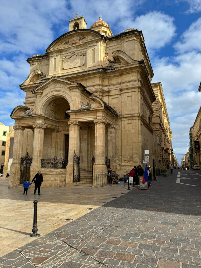 Saturday morning was all about exploring Valletta. I started my Valletta tour at the Waterfront, lined with these old, colorful buildings. And then went to Barrakka Garden. Naturally, I headed to the city gate from there. It's this big entrance to the city, pretty hard to miss. Then, I checked out St. John's Co-Cathedral. I only saw it from the outside, but it still looked impressive. The Triton Fountain was up next. It's this big fountain with three bronze Tritons.