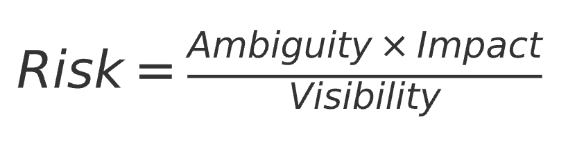 Risk equals ambiguity multiplied by impact, divided by visibility. Voila!