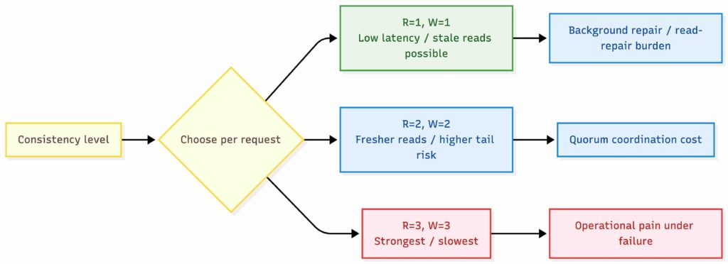 - Read and write quorum failures, split by cause, such as missing replicas, slow replicas, or coordinator timeouts.