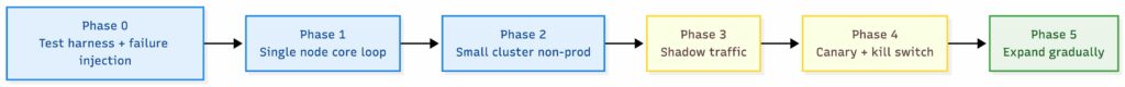 - Keep an instant kill switch: revert routing back to the old path, or force read-only mode if safety is at risk.