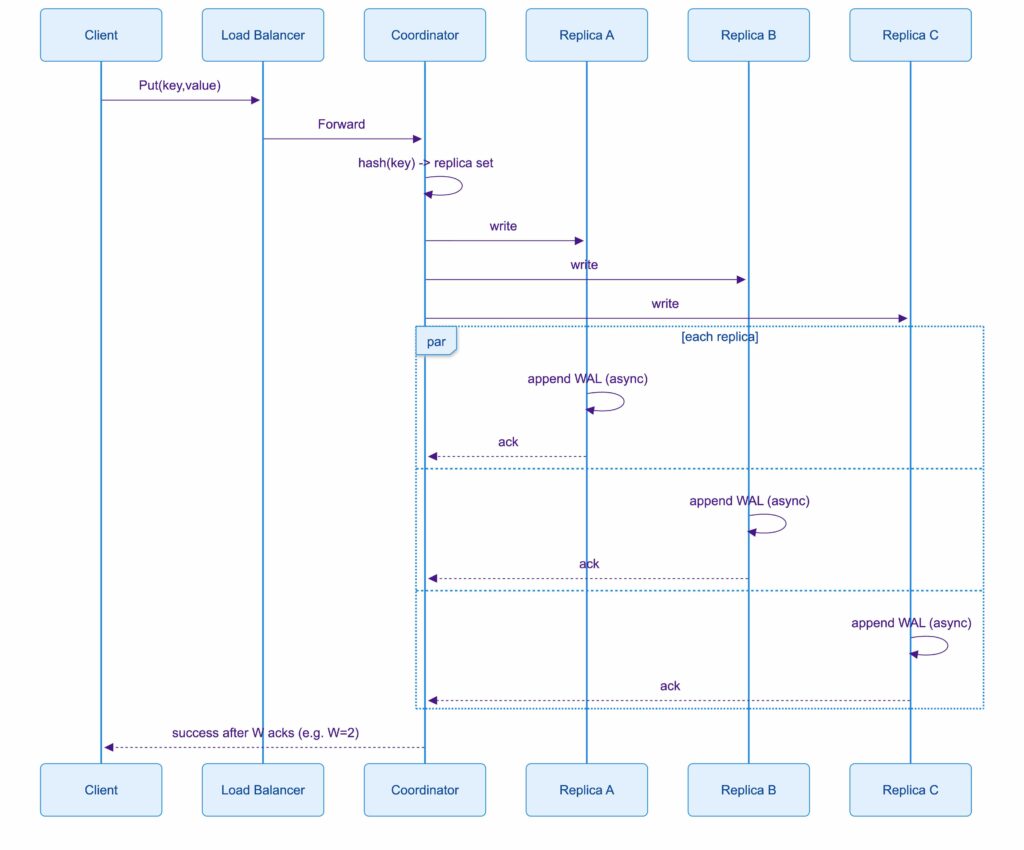 Why no deletes? Deletes in distributed systems introduce tombstones, which must propagate to all replicas and eventually be garbage collected. This adds compaction complexity and can cause “resurrection” bugs if not handled carefully. For this exercise, we treat it as out of scope, but a real system would need to address it.